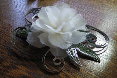 Hace poco acallé un certificado de matrimonio para una pareja encantadora en Virginia. Kristyn, la futura novia, me pidió que diseñara también una flor con adornos de púas que pudiera llevar en el pelo. No era algo que hubiera hecho antes, pero no hay nada como el deseo de complacer a alguien que confía en tus habilidades!
