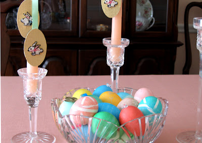 De vuelta en mi fase de punto de cruz contado hice estos conejos como parte de un centro de mesa de primavera, y todavía disfruto sacarlos cada año, junto con un tazón de huevos soplados salvados de las sesiones de decoración de huevos de Pascua.